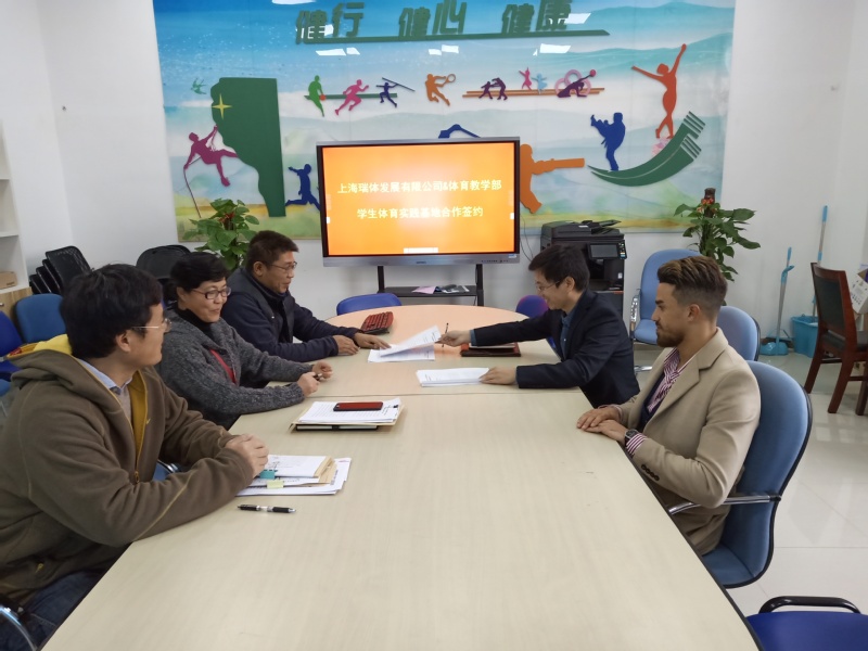 11月21日中午,瑞体体育发展有限公司负责人彭旗先生、Ash先生一行来到上海健康医学体育教学部,体育教学部负责人郁建新、教学副主任崔斌、学科带头人王洪彪老师等出席了此次实践基地合作签署,双方在南苑体育馆206会议室就学生体育实践基地相关事宜进行友好地磋商,就外籍高水平教练来我校任课、我校高水平运动队与海外高校体育交流活动、高水平学生运动员未来体育游学等合作项目达成了共识,在未来的合作计划中,瑞体公司将为我校体育俱乐部双语体育课程的开设,运动队技能认知提升等多个方面提供有力的支持,为我校体育俱乐部改革发展,学校体育事业进一步提升,学校品牌影响力进一步扩大搭建更高的平台。