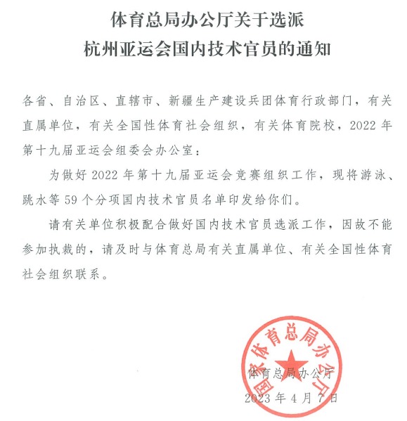 为做好第十九届亚运会竞赛组织工作,国家体育总局小球管理中心正式发函,我校体育教学部石颖颖和孙梦瑶两位老师成功入选杭州亚运会板球竞赛项目技术官员。