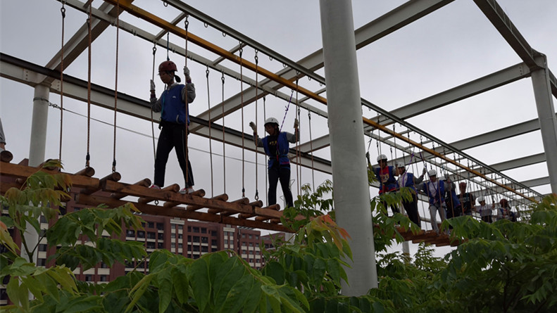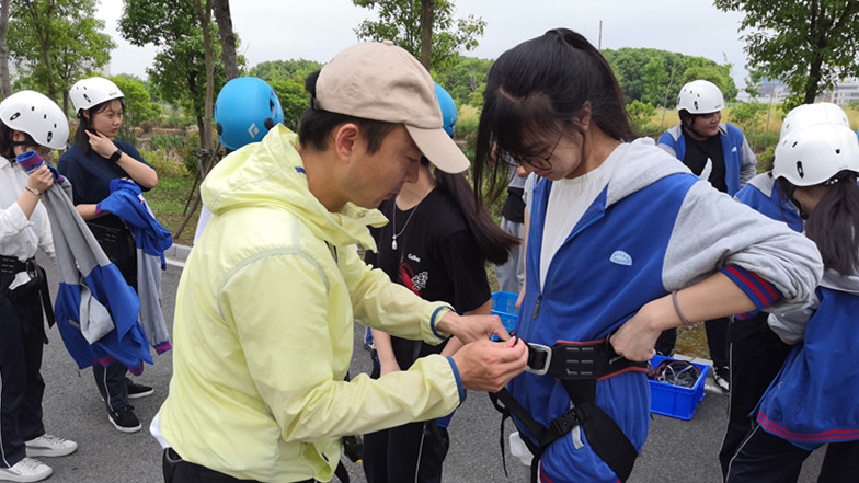 2019年5月17日,上海健康医学院体验式教育基地迎来了首批体验者,附属卫学校的30位学生干部由卫校体育艺术教学部主任倪益带队,在新落成的高空设施上完成了一次极限挑战。