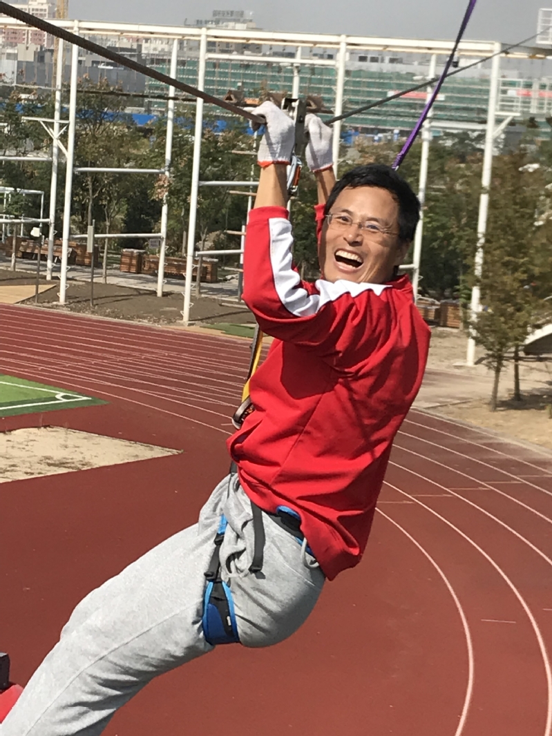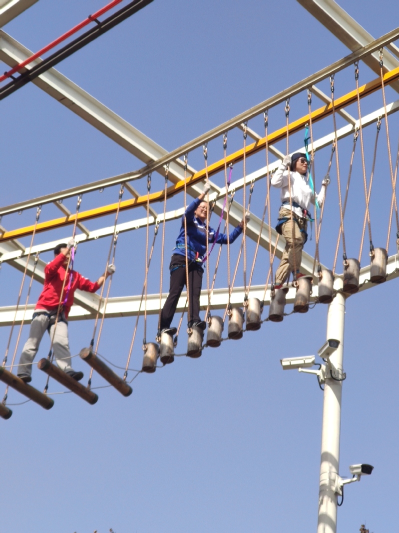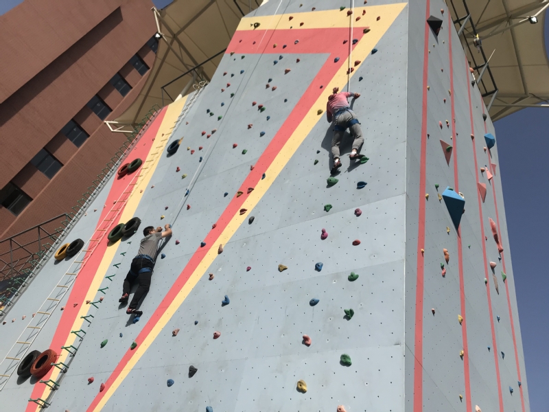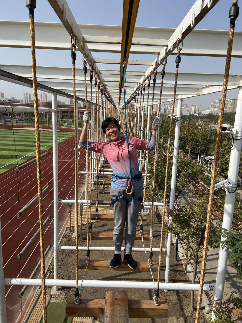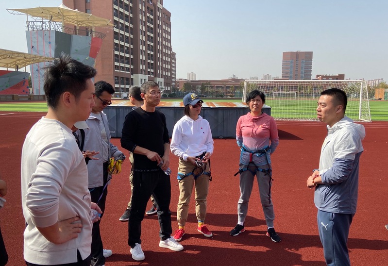 10月31日上午9点,在新南苑户外体验式基地,体育教学部直属党支部开展了“不忘初心、重走长征路”为主题的实践党课。此次实践党课充分利用了我校户外体验式基地设施,巧妙的将三个长征故事,红军们在遇到重重困难时并没有胆怯,浴血奋战,勇往直前的事迹,与户外体验式基地的攀岩、勇敢者步道、高空溜索结合,将历史事件与实际演练相结合,凸显了理论与实践并重,历史与现代交汇,在一个个生动的革命故事中,感受着战争时期我党带领穷苦民众坚守信念,团结一心,最终取得革命胜利。在户外基地的体验式活动项目中,“重现长征路,党员入角色”,用实际行动去体会当年革命前辈的艰辛历程,用心去体会我们党革命成果的来之不易。