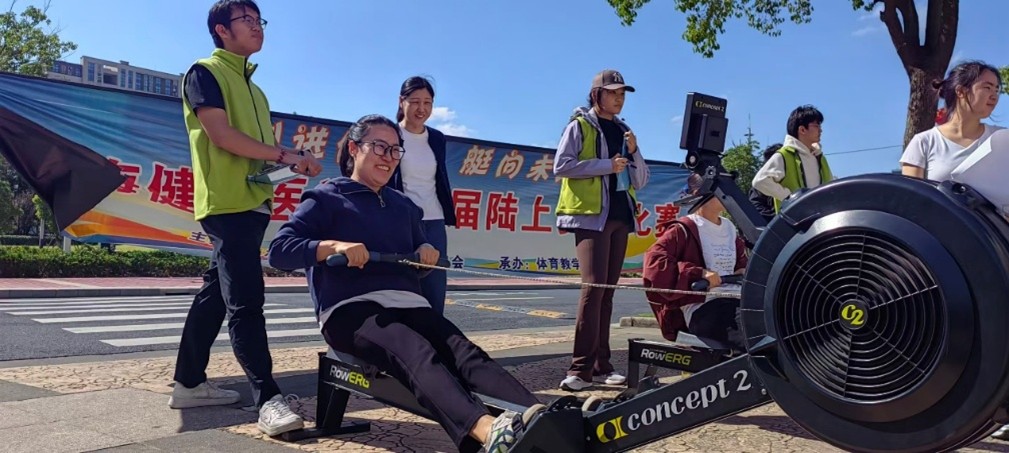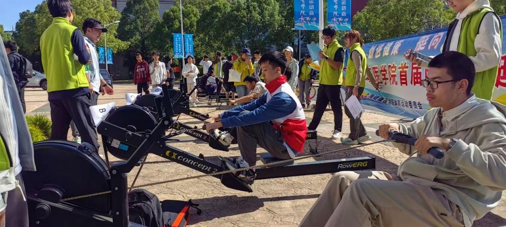 2025年10月24日,秋高气爽,上海健康医学院北苑田径场东侧一片欢腾,热情洋溢的声浪此起彼伏。学校首届陆上赛艇(测功仪)200米竞速赛在此活力上演,共吸引了216名师生踊跃参与。选手们在力与美的角逐中挥洒激情,共同点燃了秋日校园的运动之火。