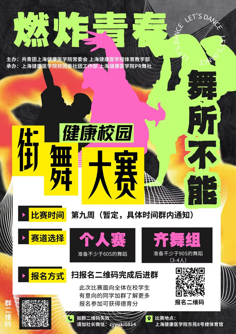 2025年11月20日,上海健康医学院东苑8号楼体育馆内动感集结、热潮涌动。第五届健康校园街舞大赛在欢呼声中圆满落幕!本次大赛以“燃炸青春,舞所不能”为主题,作为学校强化美育载体建设的重要举措,为全体在校学子搭建了专业化的艺术展演与交流平台,充分展现了健康学子蓬勃向上的精神风貌与多元发展的青春风采。