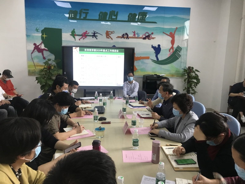 5月8日下午1点,体育教学部在南苑1号楼206会议室举行了2020年度工作推进会。黄钢校长、唐红梅副校长率党校办、发展规划处、教务处、人事处、财务处、科技处、学生处、资产与设备管理处、团委、基建处、信管中心等部门负责人一行参与会议。体育教学部党政班子成员、教研室主任、青年骨干教师代表等列席。
