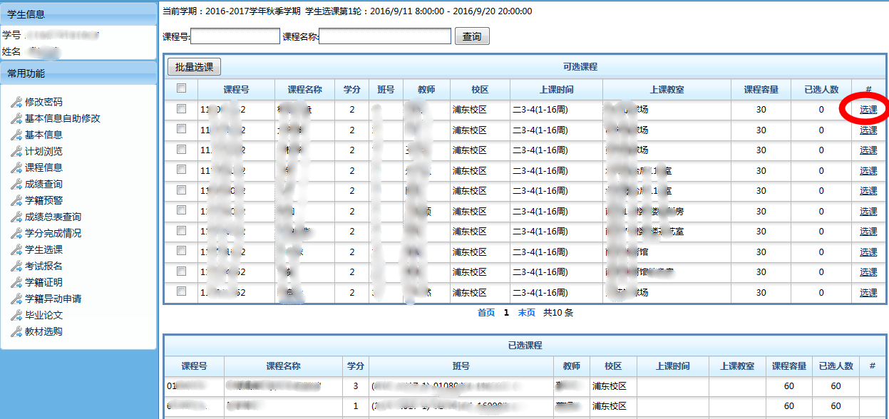1.选课完成后应在“课程信息”内及时查看是否已选课成功,若需退课重选,可在选课时间范围内退课,超过选课时间一般不得退、选课。
