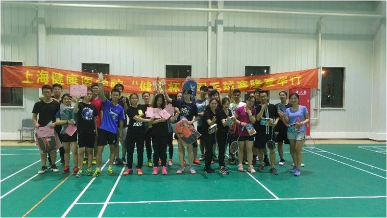 紧接着,5月24日健康杯羽毛球赛附加赛开幕,参加队伍有太平人寿周浦分布,登腾医疗器械有限公司,西门子医疗器械有限公司,上海建桥学院,上海健康医学院学生代表队,上海健康医学院教工代表队共6支队伍,在男子单打,女子单打,男子双打,女子双方,混合双打五个项目拼搏角逐。